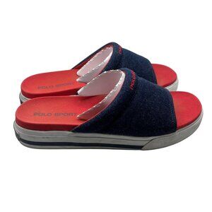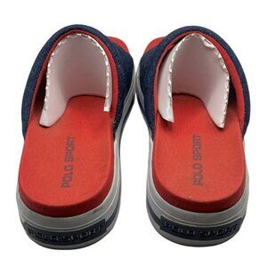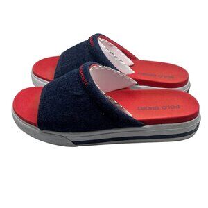 VTG Y2K Polo Sport Ralph Lauren Women's Red Blue Denim Burma Slides Size 9.5B