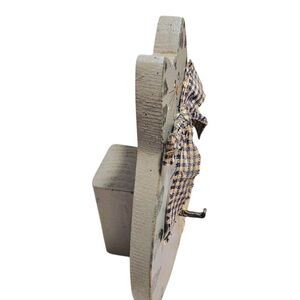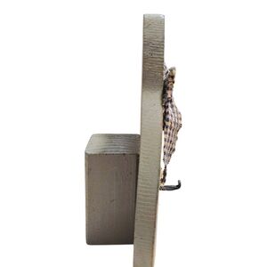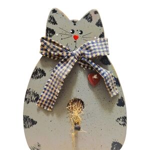 VTG Y2K Primitive Folkart Cat Decor Figurine Rustic Wood Shelf Sitter w/Hook 6"