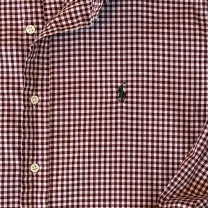 VTG Y2K Ralph Lauren Classic Fit Button Down Shirt Gingham Pony Logo Mens XL. 100% cotton. Maroon and cream check gingham. Dark forest green stitched pony logo. Great shirt for Christmas/winter season! Classic loose, relaxed fit. Excellent condition. Smoke free home. NEXT DAY SHIPPING.