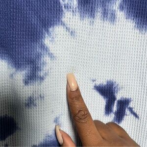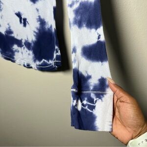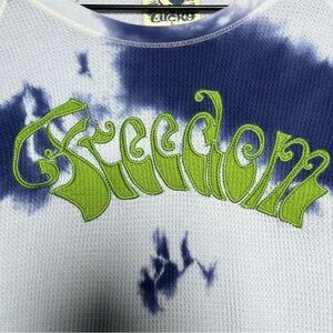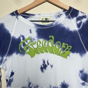 VTG Y2K Rare Lucky Brand Women Waffle Knit Top Large Blue Tye Dye Freedom Cyber