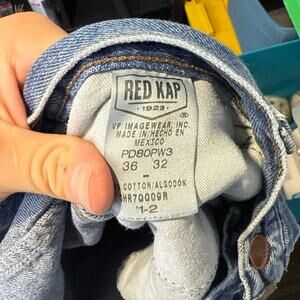 Blue VTG Y2K Red Kap carpenter workwear streetwear jeans, mens size 34x30. Theyre in good condition, has some stains and a tear