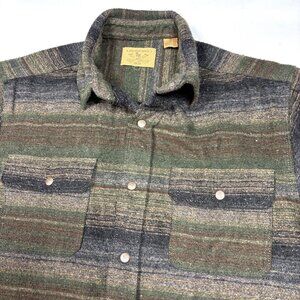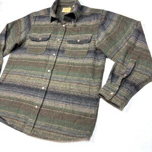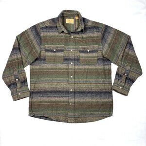 VTG Y2K RedHead Ranch Green Striped Southwest Snap Button Flannel Shirt Mens Med