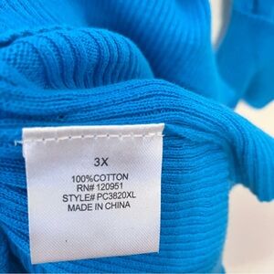 VTG Y2K Ribbed Teal Blue 3/4 Sleeve Sz.3x Cotton V-neck Tee Long Slim