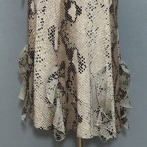 VTG Y2K Sao Paulo Women Dress 4 Beige Snake Reptile Ruffle Drape Mob Wife Retro