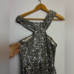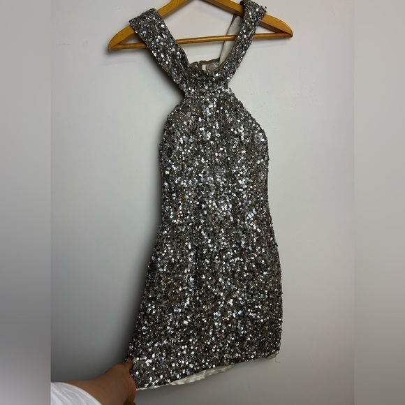 VTG Y2K Scala 100% Silk Mini Dress Women 4 Beaded full sequins Hoco Homecoming