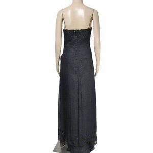 VTG Y2K Scala SILK S Beaded ASYMMETRICAL Whimsigoth Black Prom Maxi Dress