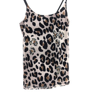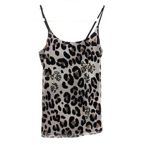 VTG Y2K Sheer Mesh Leopard Print Baddie Whimsigoth Bling Dark Fairy Cami Top SM