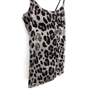 Double layered sheer mesh leopard print going out top with beading and sequins.