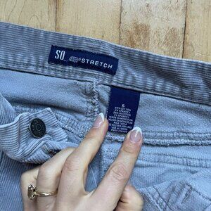 Rare So GSJC Stretch low-rise corduroy flares . Soft gray stretch corduroy, perfect early-2000s fit, wide flap pockets, and flattering flare.