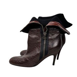 VTG Y2K Stella McCartney Brown Leather Ankle Boots Sz 8.5 Zipper Knit Cuff