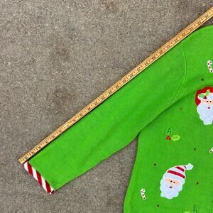 Vintage Y2K Tiara International Neon Green Santa Ugly Christmas Sweater Cardigan