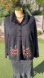 Features detachable black faux fur collar for versatile styling. Embroidered and beaded red poinsettia floral designs with green and gold accents on front lower hem and sleeves. Additional scattered gold beaded embellishments create festive sparkle. Velvety textured buttons down the front.