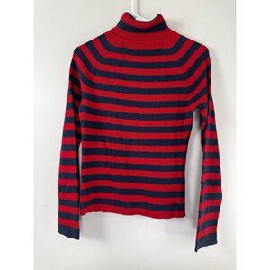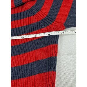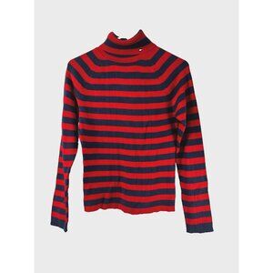 VTG Y2K Tommy Hilfiger Red Navy Striped Ribbed Turtleneck Iconic Sweater 90s Fit