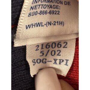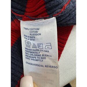 Classic vintage Y2K Tommy Hilfiger ribbed knit turtleneck sweater in bold red and navy stripes, capturing iconic late 90s and early 2000s prep-sport aesthetic. Made from cotton and dating to 2002, this piece has a timeless unisex fit that works for both men’s and women’s wardrobes. Size tag and country of manufacture are missing, but it measures pit to pit 17" and length 22.5". Soft ribbed stretch makes it versatile and flattering, perfect styled with wide-leg jeans, plaid skirts, or layered under jackets for a retro collegiate look. Great condition and a must-have for Hilfiger collectors and Y2K lovers.