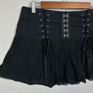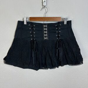 VTG Y2K Tripp NYC Mini Skirt L Black Lace Corset Bow Ruffle Emo Punk Goth