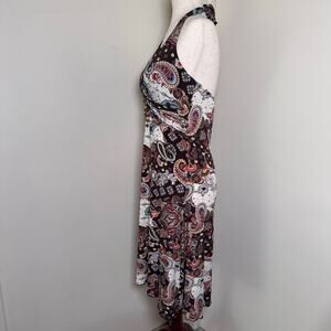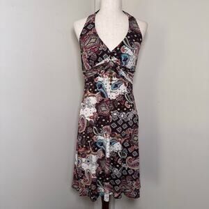 VTG Y2K Trixxi Paisley Halter Neck Dress Stretchy Tropical Boho Beachy sz Large