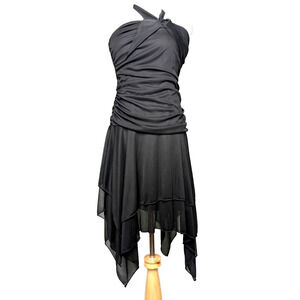 VTG Y2K Trixxi Whimsigoth Witchy Dark Fairy Ruched Sheer Hi Low Hem Black Dress