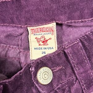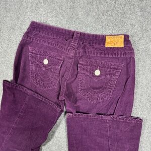 VTG Y2K True Religion Corduroy Flare Pants Size 26 Flap Magenta Low Rise 0587