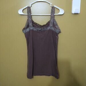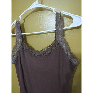VTG Y2K Urban Behavior Lace Trimmed Brown Cotton Tank M Coquette Y2K