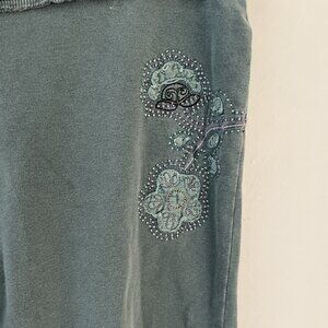 VTG Y2K Vertigo Paris Embroidered Track Pants Women's L Olive Double Sided Bling