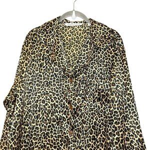 VTG Y2K Victorias Secret Satin Pajama Long Sleeve Tunic Shirt Oversize Leopard L