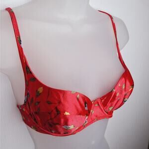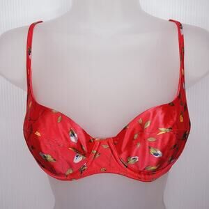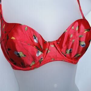 Vintage 90s Y2K Victoria's Secret Second Skin Satin Bra 5515 Demi Bra 34B Floral Coral Underwire