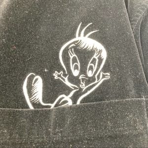VTG Y2K Warner Bros Tweety Looney Tunes Velvet Black Deadstock Grunge Shacket