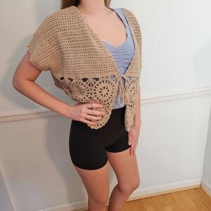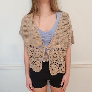 VTG Y2K Wet Seal Sweater Vest Sz Medium Womens Boho Crop Cardigan Hippie…