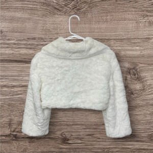 VTG Y2K Wet Seal Womens Faux Fur Bolero Jacket Front Clasp Sz Large 3/4 Sleeves