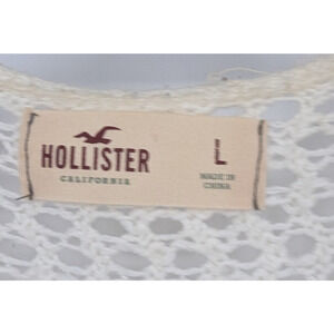VTG Y2K Womens Hollister Cream Woven Open Front Preppy Cardigan Sweater Large
