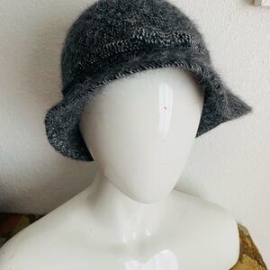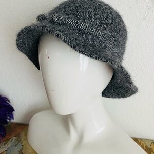 VTG Y2K Women's Nine West 100% Gray Mohair Hat Bow strap Detail Bucket Winter
