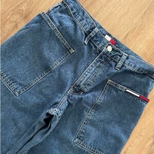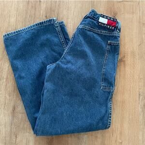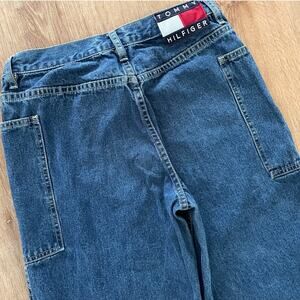 VTG Y2K Womens Tommy Hilfiger Wide Leg Big Pocket Baggy Jeans Med Wash size 5
