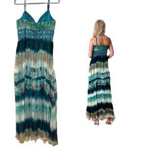 VTG. Y2K XSCAPE 100% SILK BEADED FLOWY MERMAID MAXI FORMAL DRESS SZ. 12 LARGE NWOT