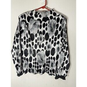 Interesting 90s/YTK polkadot, floral, micro pleated blouse