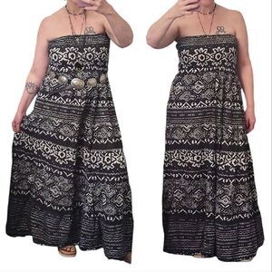 VTG Y2K Black White Geo Print Strapless Tiered Cotton Grunge Maxi Dress *L / XL