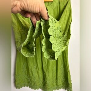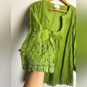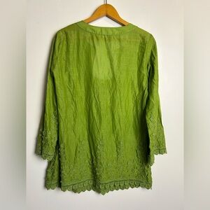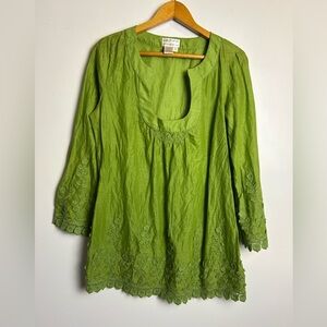VTG Y2k Max Studio Specialty Tunic Top Blouse M Green Embroidery Hem Boho