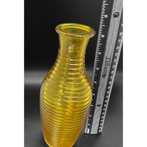 This unbranded VTG Yellow/Gold Beehive Striped Glass Vase is an 8.5" tall piece of elegant decor. Its unique striped pattern and vibrant color make it a striking addition to any space.