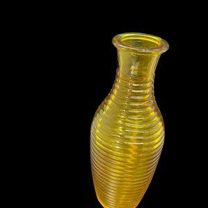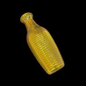 VTG Yellow/ Gold Beehive Striped Glass Vase Pattern