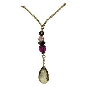 This stunning vintage necklace features a beautiful teardrop-shaped yellow glass pendant that catches the light beautifully. The pendant hangs from a 36-inch gold-tone chain, making it a perfect statement piece for formal occasions like weddings, graduations, and business events. The necklace has a spring ring closure and is in excellent vintage condition, perfect for anyone looking to add a touch of classic elegance to their wardrobe. Whether you're looking for a unique gift for someone special or a statement piece to wear yourself, this necklace is sure to impress.