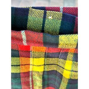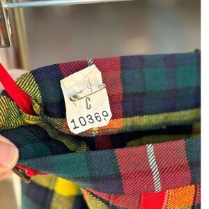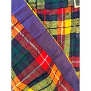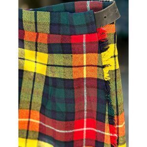 Vintage Yellow Red Tartan Plaid Pleated Kilt Wrap Skirt Size XS/S Buckle Thru Closure