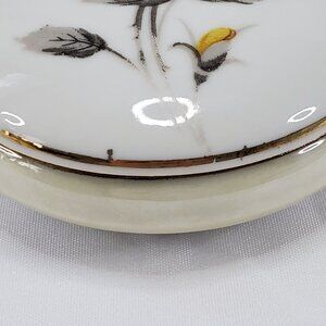 VTG Yellow Rose Trinket Holder Jewelry Box Porcelain Round Gold Trim Japan