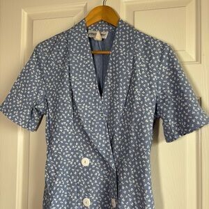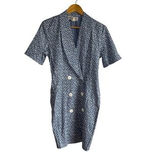 VTG Young Edwardian Mini Dress Small 7 Wrap Double Breasted Blue Floral Coquette