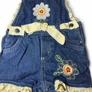 VTG Young Hearts Denim Overall Shorts. Size 24m. Does have some pilling from wear.