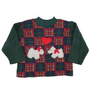 VTG Young Hearts Toddler Girl 4T Crewneck Green Scottie Dog Scottish Sweatshirt