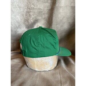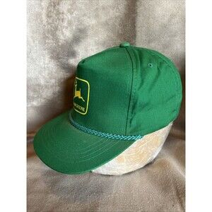 This vintage Yupoong John Deere snapback hat features a solid green color with a farm theme, adjustable size but see picture the SnapBack is broken. Made from polyester and cotton material, and a canvas fabric type. It is designed for both men and women, with a small size suitable for adults. The hat includes the iconic John Deere logo and is perfect for casual wear, work, or travel.