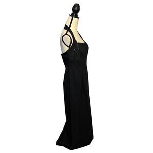 VTG ZUM ZUM by Niki Livas Evening Dress Womens 8/10 Black Halter Neck Side Slit