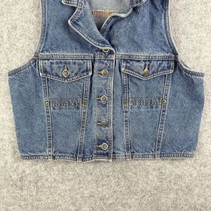 VTG Zena Jeans Vest Womens L Western Denim Sleeveless Cropped Button 90s Retro