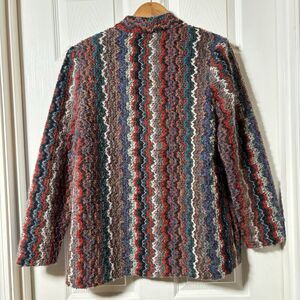 VTG Zig Zag Knit Cardigan Sweater USA Made 80s Boho Art to Wear Wool Blend Sz 10