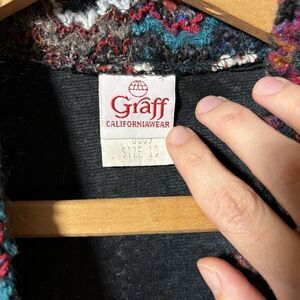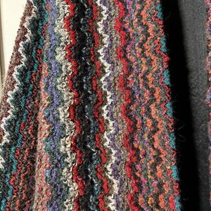 VTG Zig Zag Knit Cardigan Sweater USA Made 80s Boho Art to Wear Wool Blend womens Sz 10 statement piece retro funky multicolor colorful vintage chunky knit acrylic polyester wool rayon poly chenille mohair textured coogi style dramatic lined fuzzy open front long sleeve mid length festival bohemian cottage holiday winter spring fall festive autumn