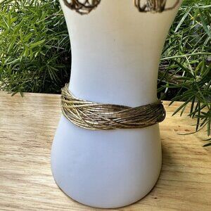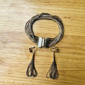 VTG Zuni Liquid Silver Gold Plated Bracelet + Earrings Stamped Sterling & LC